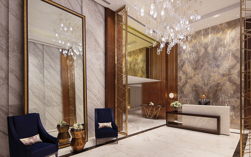 | Lift Lobby Walls | Granite/ stone/ tiles/ Acrylic emulsion/ wall paper/ textured paint finish. |