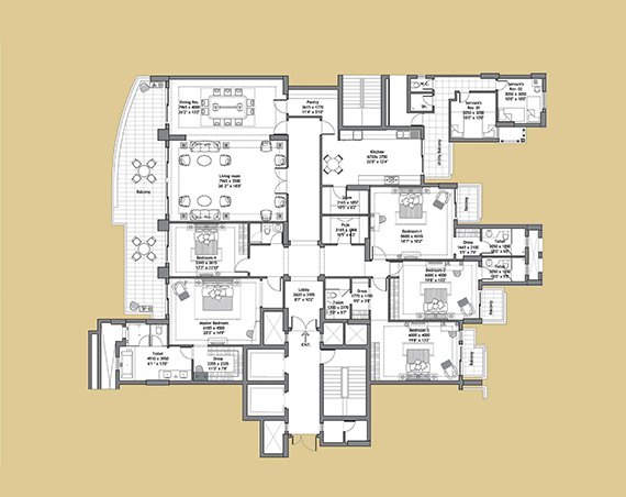 Magnolias comprises of centrally air-conditioned 4 BHK and 5 BHK apartments in sizes ranging from 6,300 square feet for standard apartments and 9,000 to 10,000 square feet for Duplex and Penthouses with a top of the line fixtures and fittings.