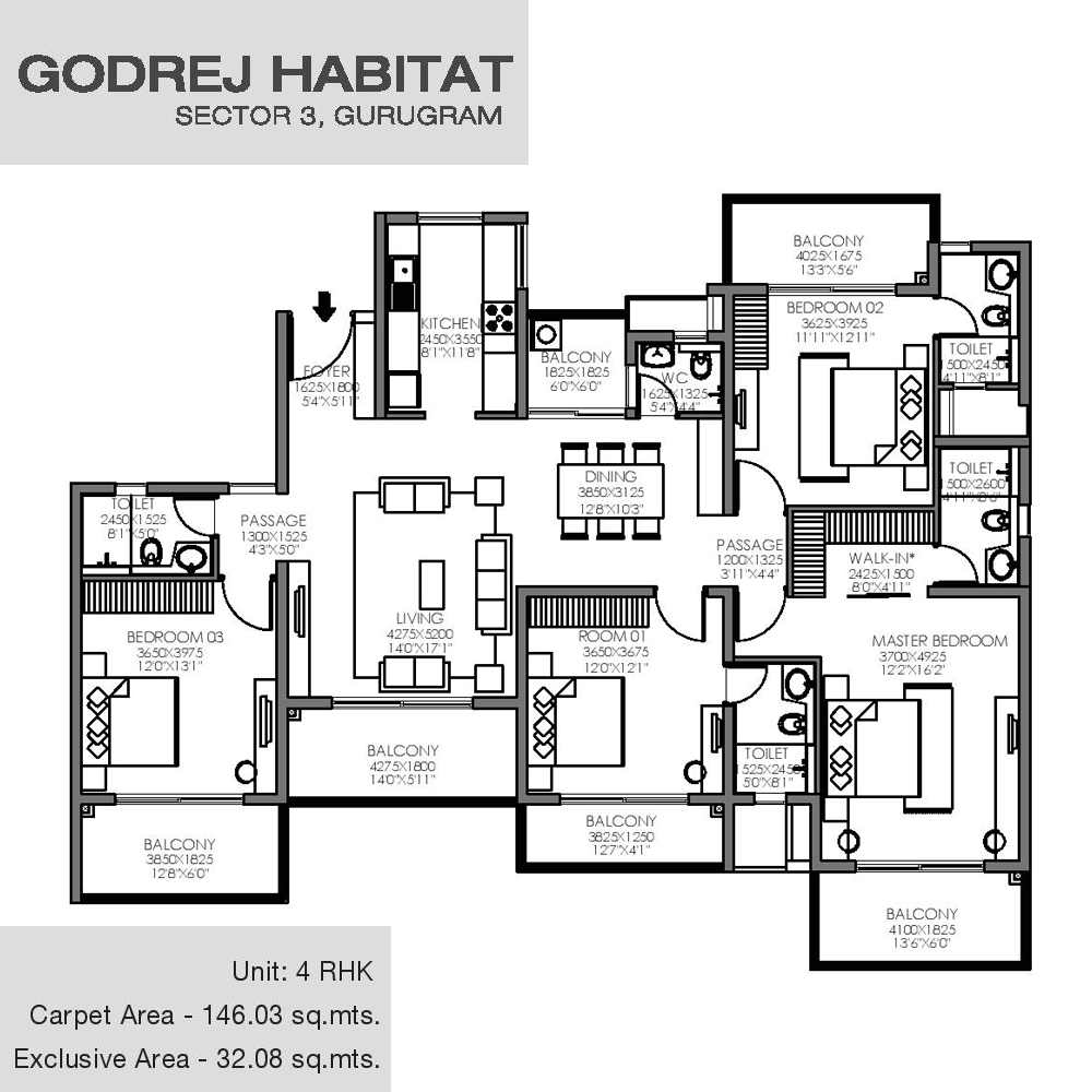 • Godrej Habitat Gurgaon is a perfect merge of 2 BHK, 3 BHK and 4 BHK apartments