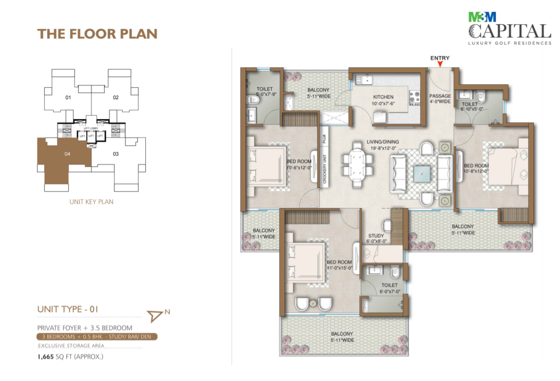 | 3.5 BHK + Utility | 1650 Sq.Ft. | 1.46 Cr* |