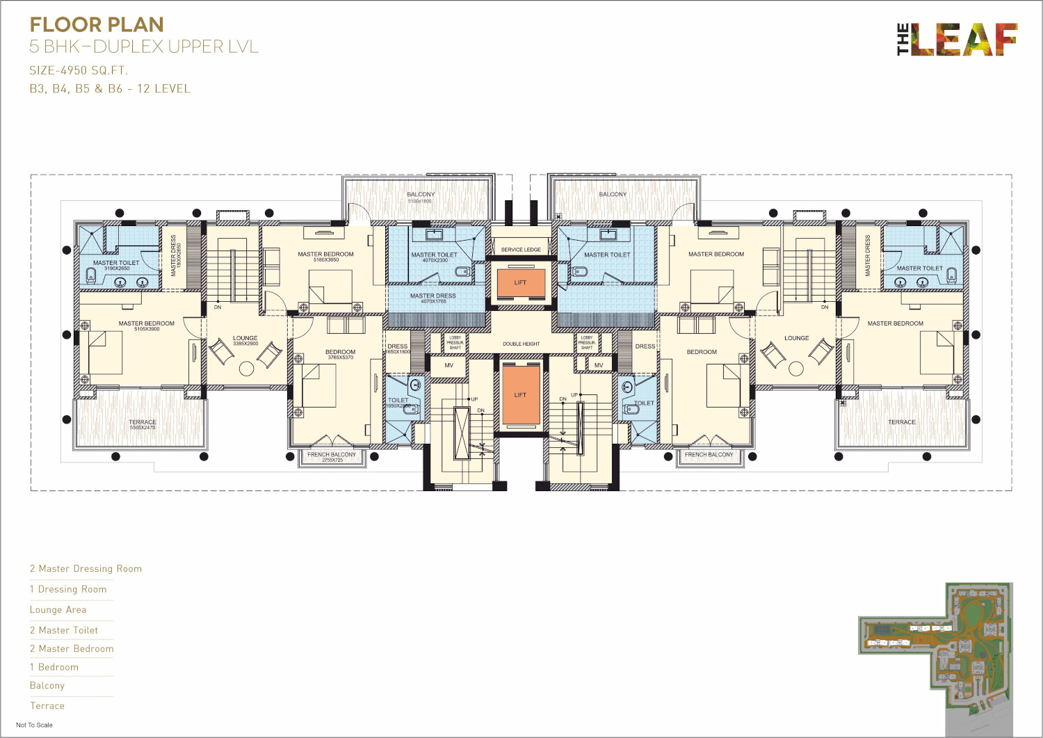 | 8 | Penthouse | 5.5 BHK | 4950 | 6500 | 3,21,75,000 | 8 |